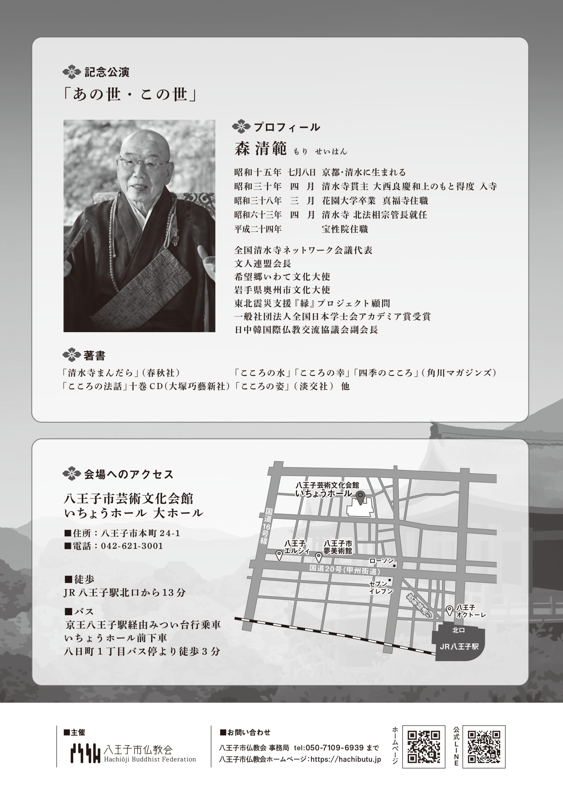 第二部の記念講演では、森清範師をお迎えし、「あの世・この世」と題してご講演いただきます。
